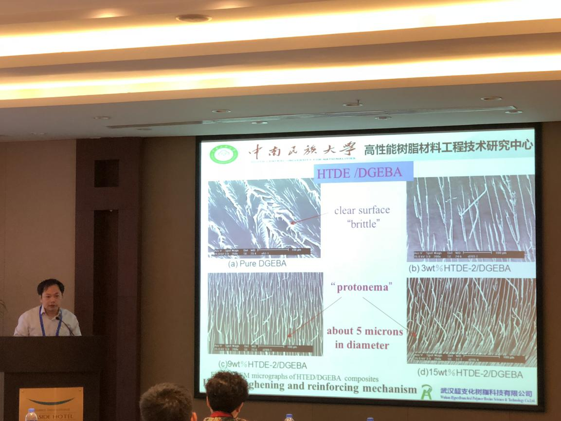 武汉超支化树脂科技有限公司的首席科学家所带领的技术团队主持了9项关于“超支化聚合物领域”的国家自然科学基金项目,成功实现多种超支化聚合物的产业化及其应用,公司成为中国实现超支化聚合物产业化年产万吨级的企业。我司首席科学家受邀出席本次盛会,并作了“超支化聚合物的合成、产业化及其应用”主题报告,将所提出的“原位增强增韧机理”、超支化聚合物在汽车工程塑料、纳米能源材料等领域的应用成果与同行学者分享。